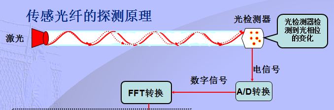 当光信号从激光发射器输送进光纤时,报警处理器会处理接收到的光信号的相位。假设传感光纤没有受到任何干扰或光的传输没有变化,那么光信号的相位也将不发生变化;当传感光纤受到运动或震动的干扰时,光信号的传输模式就会发生变化。